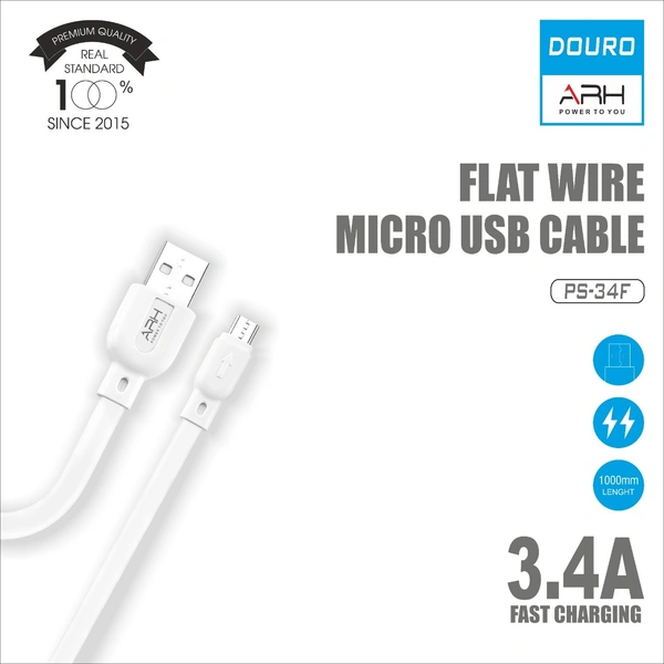 ARH Douro PS-34A 3.4Amp PVC Shielding Micro USB Charge and Sync Cable 1 m, (White)