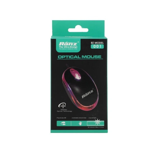 Ranz USB Optical Mouse 1000 DPI- Black with 1 Year Warranty